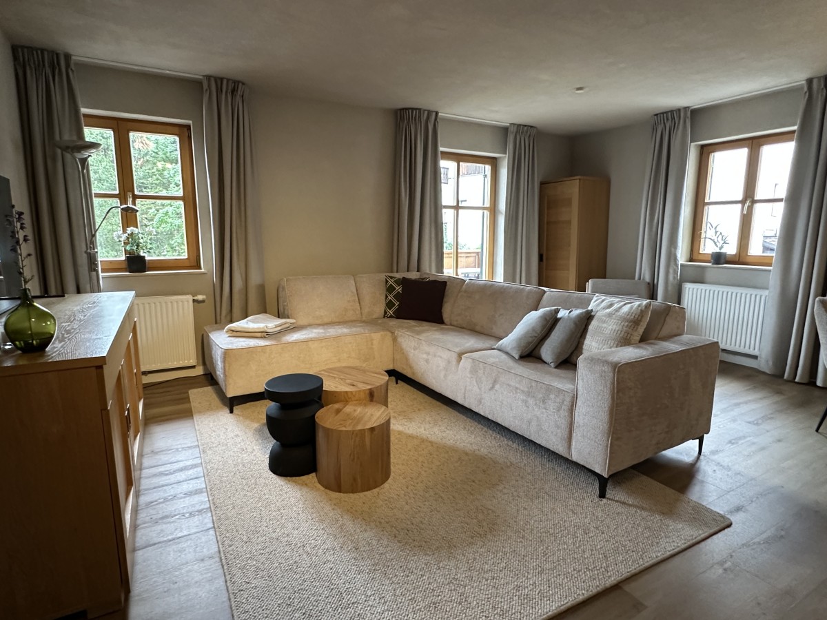 Layout: Wohnzimmer - Esszimmer Voll ausgestattete Küche (4-Flammen-Herd, Kühlschrank, Geschirrspüler, Nespresso-Maschine... Lees meer..